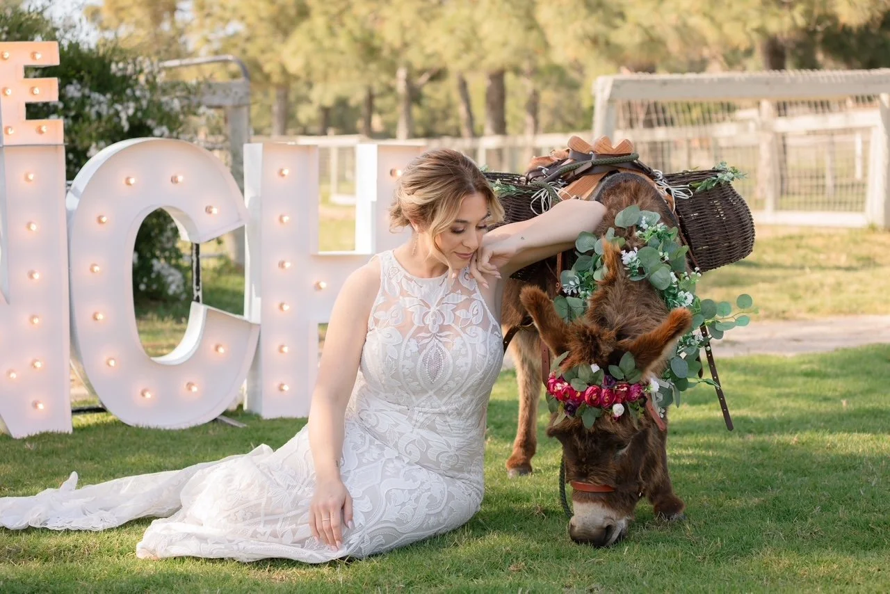 Absolutely!! We like to make sure the burros match the aesthetic of your event with their floral decorations. We have several floral crowns and garlands to choose from, or you can opt to have your florist provide your own flower crowns/garlands.